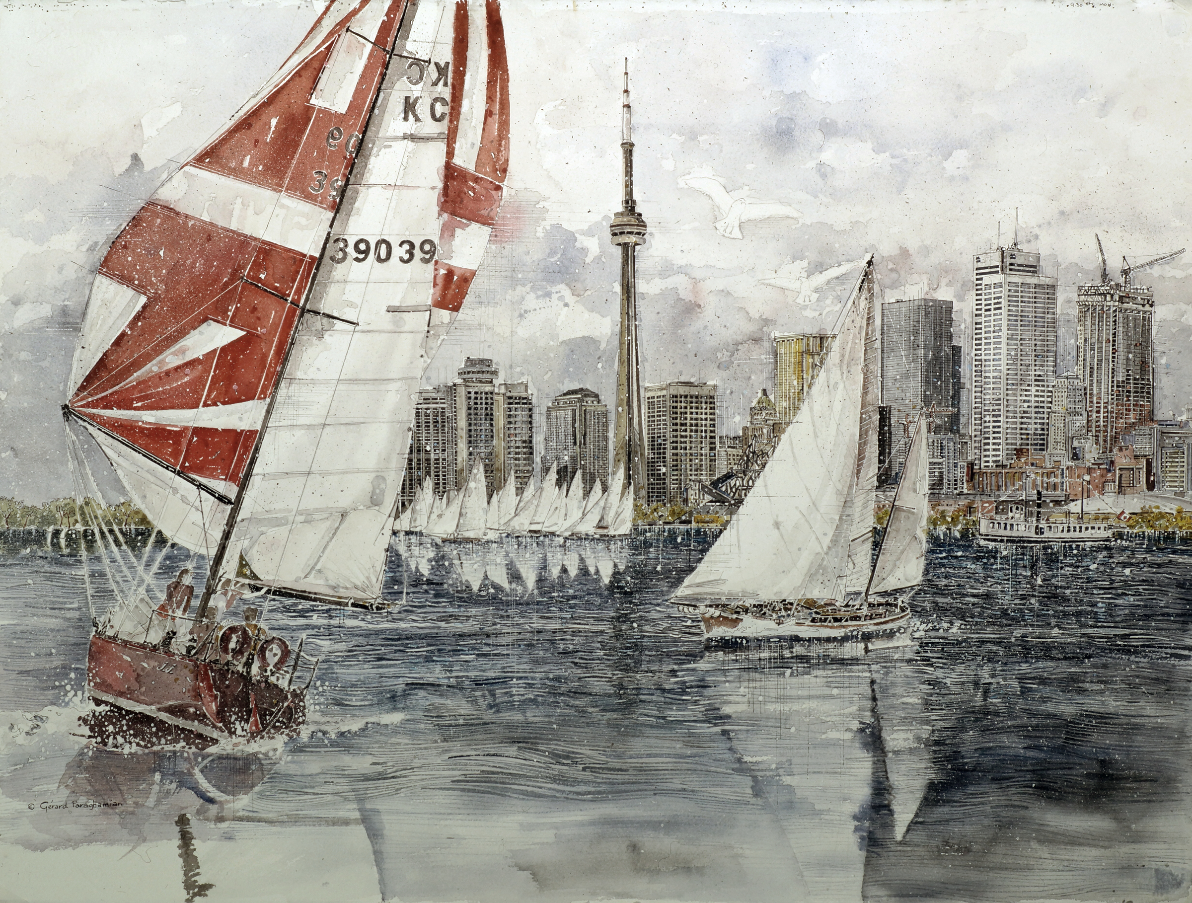 He began painting with oils, then, in the late 1970's, shifted to watercolours. "I didn't feel that oils were challenging enough." Gérard explains that mistakes in oil paintings can be covered up, but with watercolour, it is impossible. No other medium can achieve such a clean impact of luminosity.